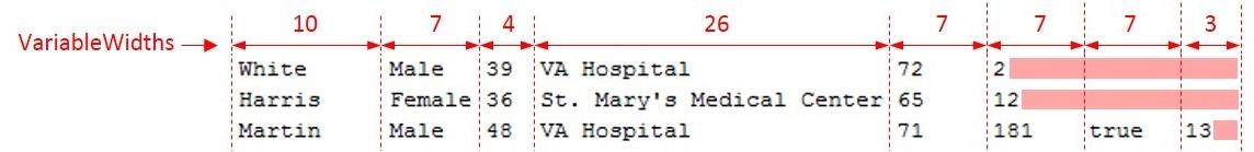 VariableWidths = [ 10, 7, 4, 26, 7, ...
