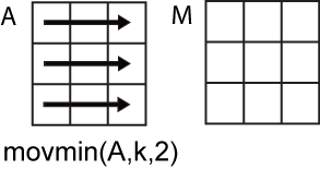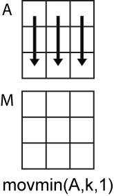 Если A является вектором, то movmin действует вдоль вектора.
