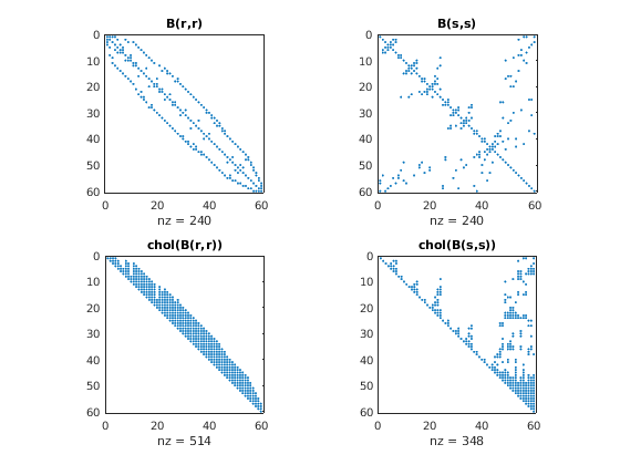 p = symamd(S) для симметричного положительного определенного матричного S, возвращает вектор перестановки p, таким образом, что S(p,p) имеет тенденцию иметь более разреженный Фактор Холесского, чем S. Чтобы найти упорядоченное расположение для S, symamd создает матричный M, таким образом что spones(M'*M) = spones (S), и затем вычисляет p = colamd(M). Функция symamd может также работать хорошо на симметричные неопределенные матрицы.