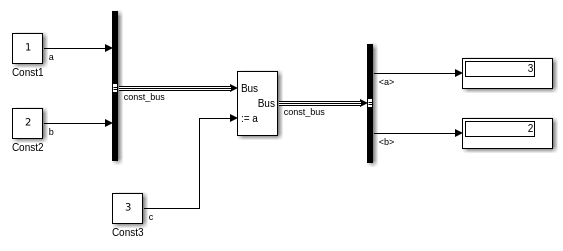 Используйте блок Bus Assignment, чтобы присвоить значения сигнала к элементам шины. Измените значения элемента шины, не добавляя блоки Создателя Селектора и Шины Шины, чтобы выбрать элементы шины и повторно собрать их в шину.