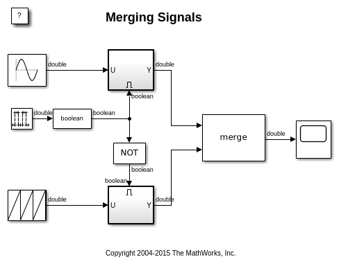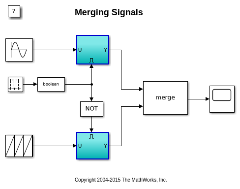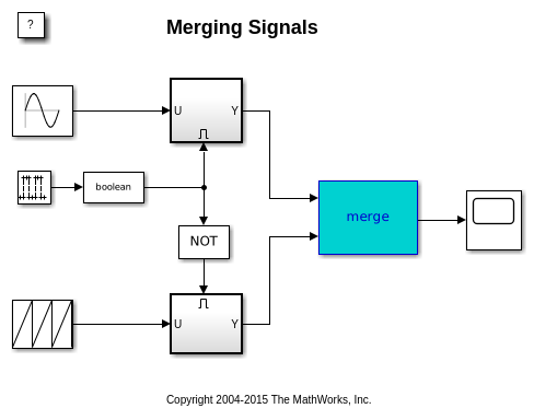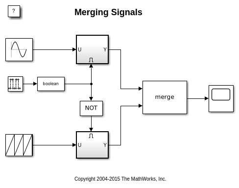 Можно использовать блок Merge, чтобы создать единственный сигнал, значение которого равно выводу того, какой бы ни активированная подсистема является выполняющимся в данным моментом. Следующие шаги.