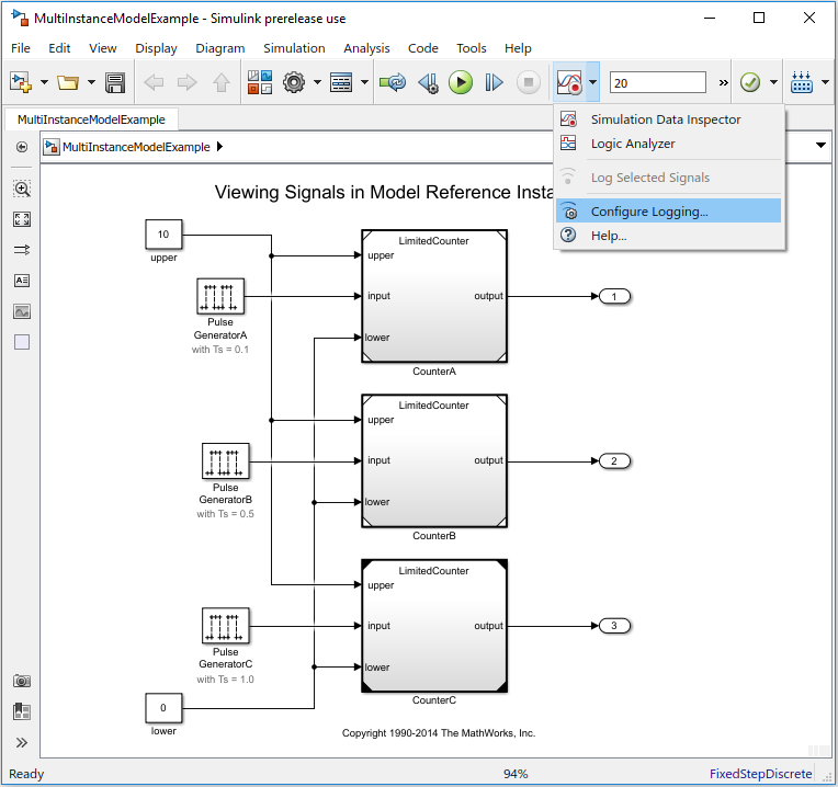 Этот пример показывает, как использовать Моделирование Data Inspector, чтобы просмотреть и анализировать сигналы в моделях, на которые ссылаются. Моделирование Data Inspector полагается на сигнал, регистрирующий так этот пример, показывает, как сконфигурировать вашу модель, чтобы регистрировать сигналы в моделях, на которые ссылаются.