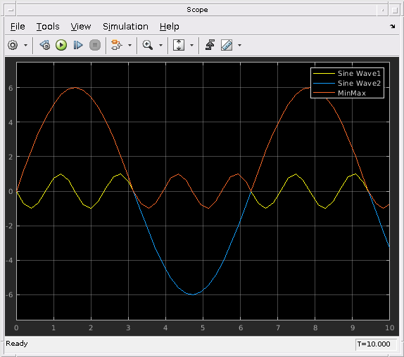 Блок MinMax игнорирует любое входное значение, которое является NaN, кроме тех случаев, когда каждым входным значением является NaN. Когда всеми входными значениями является NaN, выводом является NaN, или как скаляр или как значение каждого элемента выходного вектора.