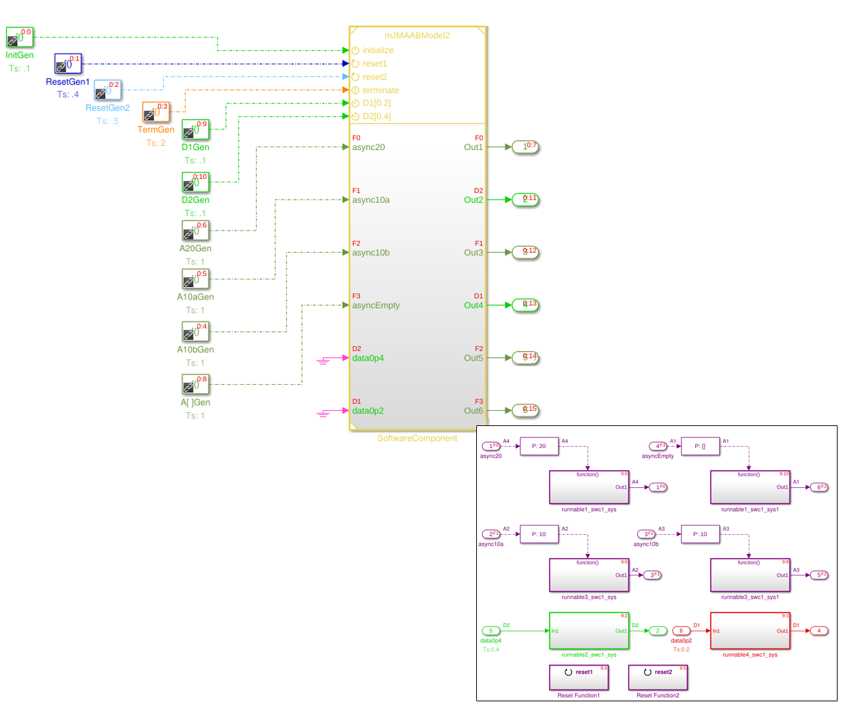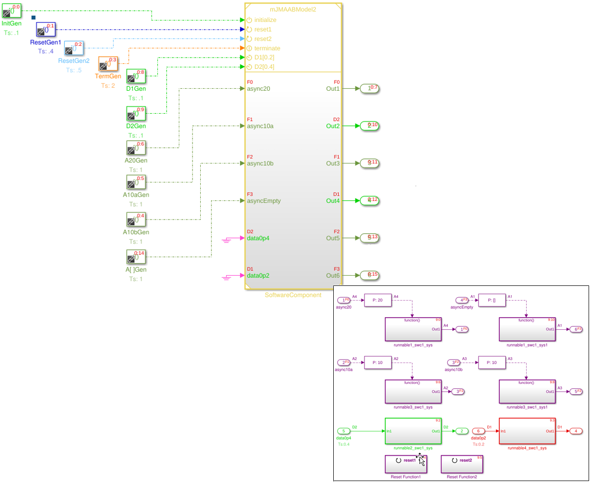 lf там является больше чем одним портом сброса, инициаторы к тем портам сброса не сортируются. Например, если модель имеет, каждый инициализирует порт, управляемый блоком A, два порта сброса, управляемые блоками B и C и один оконечный порт, управляемый блоком D, то виды Simulink в порядке A, B или C, и затем D. B и C сортируются, используя общие правила сортировки.