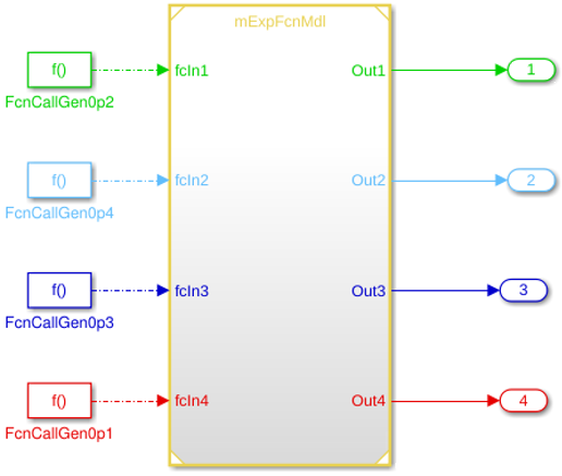 Если Блок модели ссылается на модель, которая имеет инициализирование, сброс или оконечные порты, у инициаторов вызова функции, соединенных с этими портами, есть более высокий приоритет, чем другие входные порты вызова функции. Например, модели экспорта функций, основанные на уровне модели и модели JMAAB-B могут иметь другие входные порты вызова функции. Инициаторы вызова функции видов Simulink в выполнять приказе: