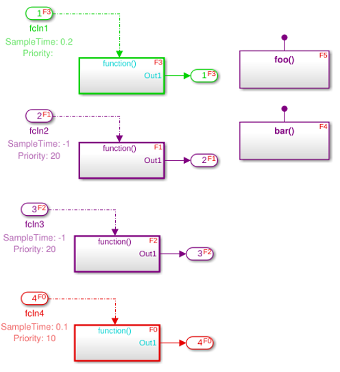 Если вы очищаетесь, Параметр конфигурации Включают проверки планирования struct на модель, на которую ссылаются, и модель тестовой обвязки находится в режиме взятия сигнала. Инициаторы вызова функции сортируются на основе их приоритетов частоты дискретизации. Для этого примера отсортированным порядком является FcnCallGen0p1> FcnCallGen0p2> FcnCallGen0p3> FcnCallGen0p1.