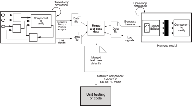 Для моделирований с обратной связью проверьте компонент в контексте его контейнерной модели путем журналирования сигналов к тому компоненту и хранения их в файле данных. Если те сигналы не составляют полный тестовый набор, генерируют модель тестовой обвязки и добавляют или изменяют тесты в Signal Builder.