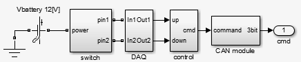 Чтобы включать эти события, добавьте различное, содержащее входной параметр от шины CAN и компонентов переключателя, которые генерируют события, поставленные на шине CAN переключателю драйвера, и пассажир переключают различные подсистемы. Чтобы открыть модель и сконфигурировать протоколы связи CAN, запустите configureModel задачу, slexPowerWindowCommunicationProtocolSim.