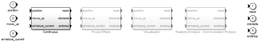 Дважды кликните модель slexPowerWindowExample power_window_control_system/detect_obstacle_endstop/Continuous/verify_position блок, чтобы видеть непрерывный вариант.