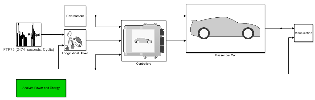 Используйте блоки аккумулирования энергии, чтобы собрать автомобильные электрические системы для калибровки батареи и исследования качества работы.