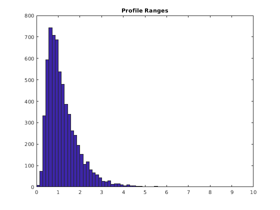 [ возвращает логарифмическую область значений, то есть, Range, LogRange] = exprprofrange(Data)log(max(prof))- log(min(prof)), каждого профиля выражения. Если вы не задаете выходные аргументы, exprprofrange отображает столбиковую диаграмму гистограммы области значений.