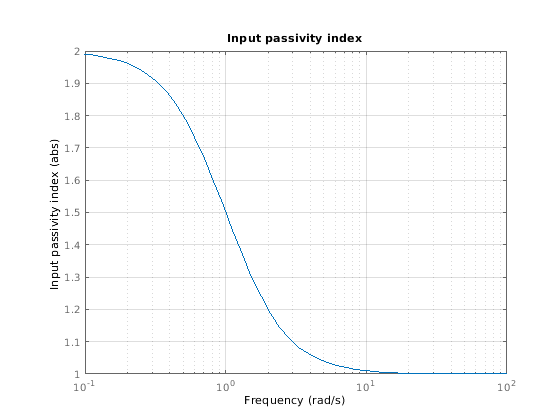 Если w является массивом ячеек формы {wmin,wmax}, то passiveplot строит индекс пассивности на частотах, располагающихся между wmin и wmax.