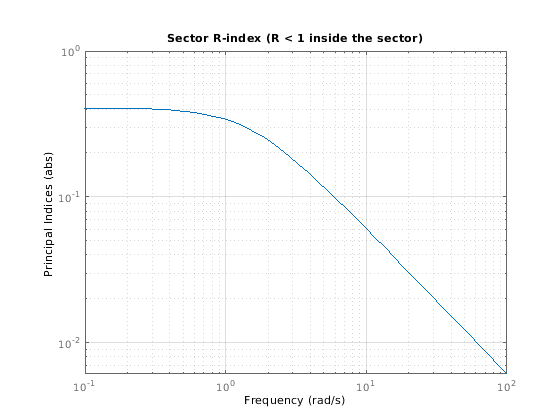 = sectorplot(H,Q)index = sectorplot(H,Q,w)sectorplot( строит относительные индексы сектора для динамической системы H,Q)H и данная матрица сектора Q. Эти индексы измеряются тем, насколько связанный сектор удовлетворен (индексируйте меньше чем 1), или нарушенный (индекс, больше, чем 1) на данной частоте. (Займитесь Границами Сектора и Индексами Сектора для получения дополнительной информации о значении индекса сектора.) sectorplot автоматически выбирает частотный диапазон и число точек на основе динамики H.