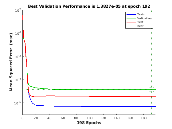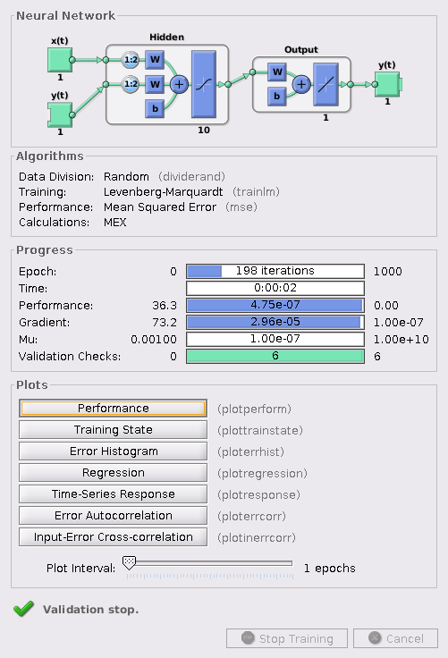 [net,tr] = train(net,Xs,Ts,Xi,Ai); nntraintool