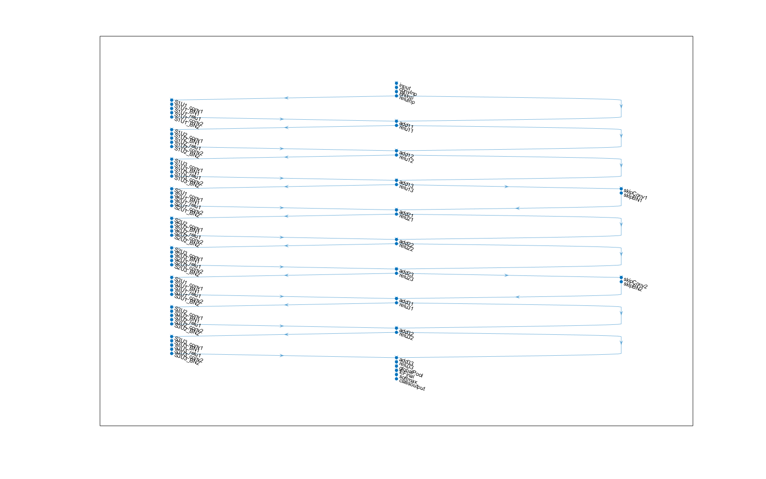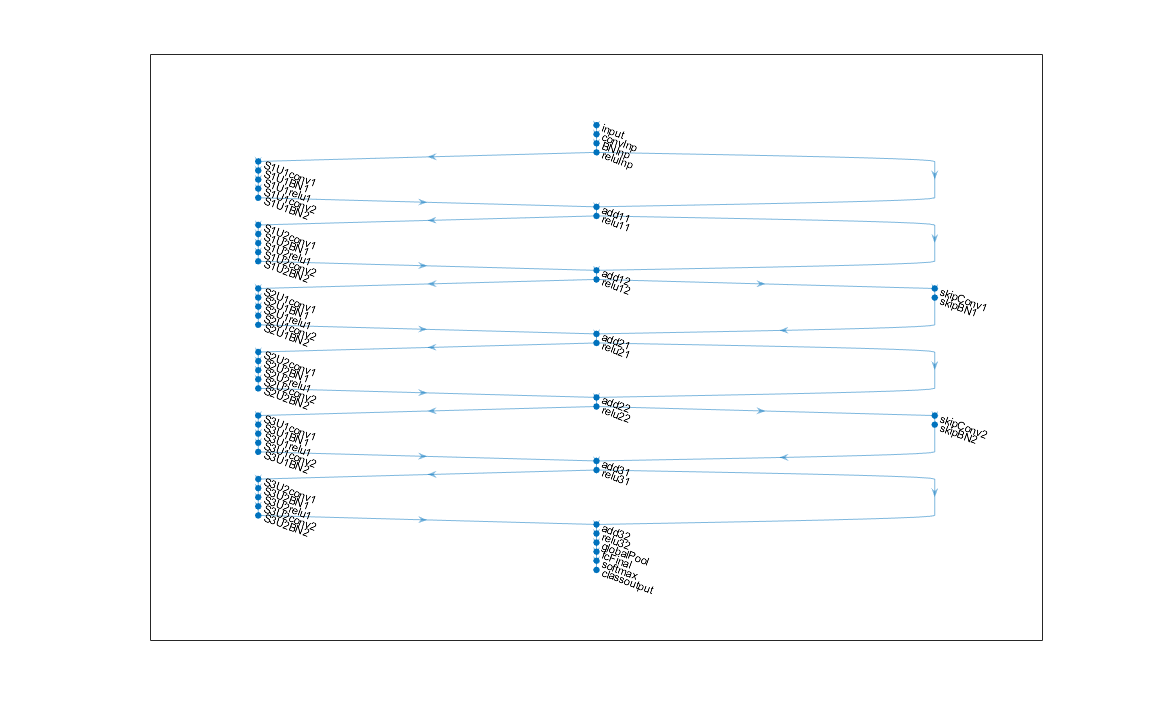 numUnits = 9; netWidth = 16; lgraph = residualCIFARlgraph(netWidth,numUnits,"standard"); figure('Units','normalized','Position',[0.1 0.1 0.8 0.8]); plot(lgraph)