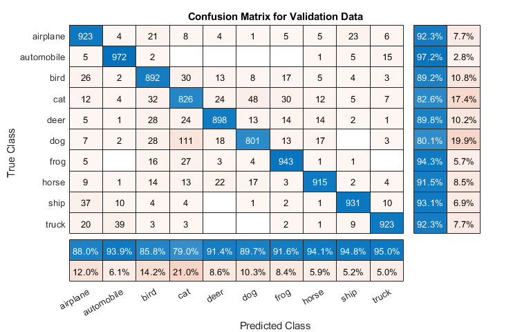 doTraining = false; if doTraining trainedNet = trainNetwork(augimdsTrain,lgraph,options); else load('CIFARNet-20-16.mat','trainedNet'); end