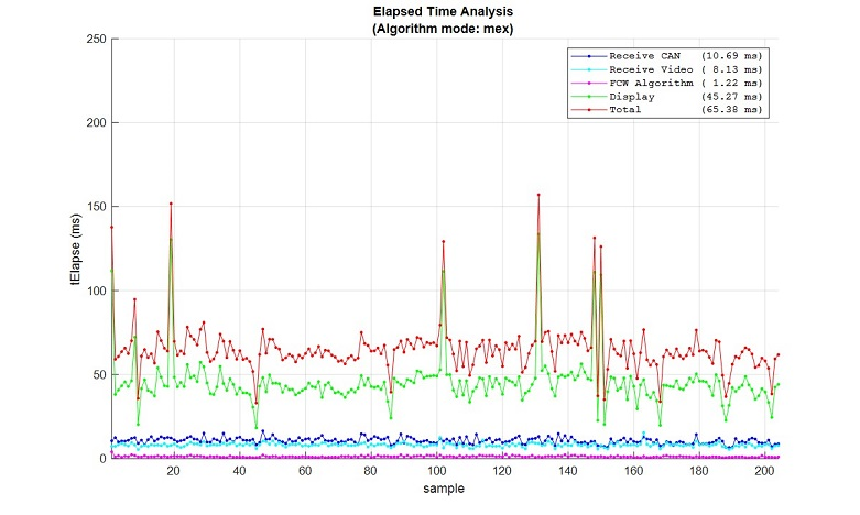 Получение приложение FCW может также быть перезапущено. На этот раз с входным параметром, чтобы использовать скомпилированный код MEX, созданный на предшествующем шаге.