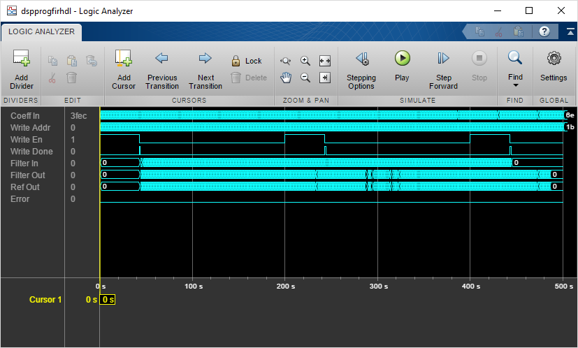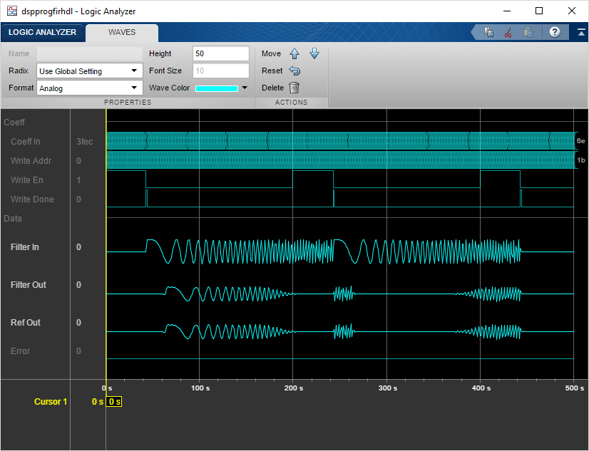 Сигналы интереса - входные коэффициенты, запишите адрес, разрешение записи, запишите сделанный, просочитесь, отфильтруйте, ссылка и ошибка были переданы потоком для визуализации.