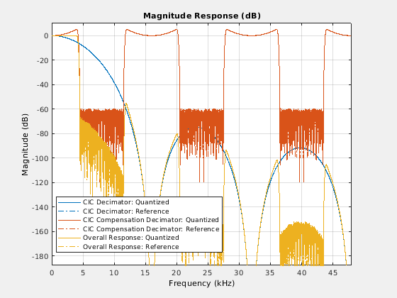 Также можно сгенерировать функцию MATLAB® от каскадного объекта фильтра и вызвать эту функцию, чтобы отфильтровать сигнал. Сгенерированная функция поддерживает генерацию кода C/C++. Смотрите generateFilteringCode.