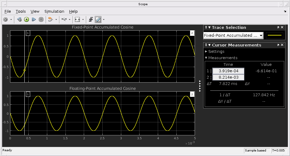 Когда вы используете входные сигналы с плавающей точкой, блок не квантует накопление. Поэтому необходимо выбрать шаг и сместить значения, чтобы представлять часть 2π без квантования, видеть, Вычисляют Шаг Фазы С плавающей точкой для Оптимизированного HDL NCO.
