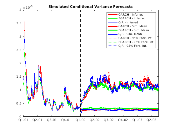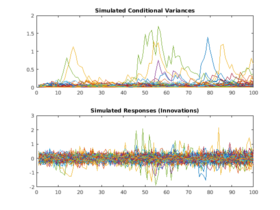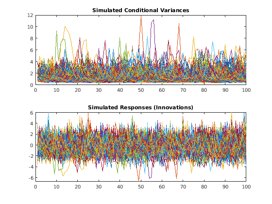 simulate(___) моделирует условные пути к отклонению с дополнительными опциями, заданными одним или несколькими аргументами пары V = simulate(Mdl,numObs,Name,Value)Name,Value. Например, можно сгенерировать несколько демонстрационных путей или задать преддемонстрационные инновационные пути.