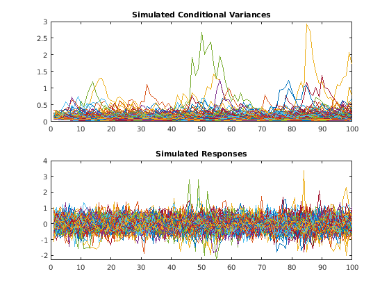 V = simulate(Mdl,numObs)V = simulate(Mdl,numObs,Name,Value)[V,Y] =