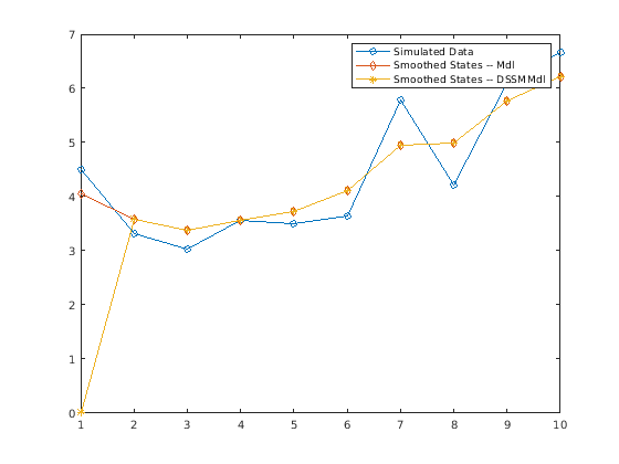 преобразовывает рассеянный объект модели в пространстве состояний (Mdl = ssm(DSSMMdl)DSSMMdl) в объект модели в пространстве состояний (Mdl). ssm устанавливает все начальные отклонения рассеянных состояний в SSMMdl.Cov0 к 1e07.