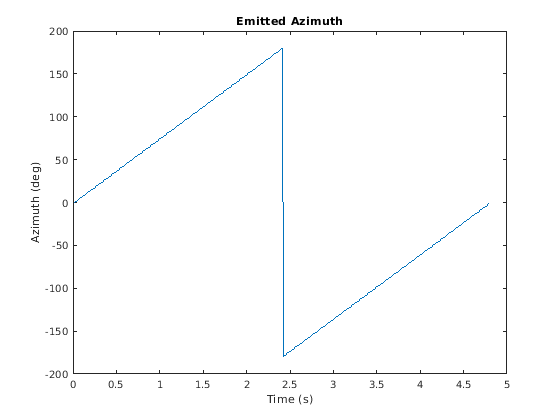 синтаксис удобства, который создает объект emitter = radarEmitter(EmitterIndex,'Rotator')radarEmitter, который механически сканирует 360 ° в азимуте путем механического вращения антенны на постоянном уровне. Когда вы устанавливаете HasElevation на true, радарная антенна механически указывает на центр поля зрения повышения. Смотрите, что Вращающее устройство Сканирует для свойств, установленных этим синтаксисом.