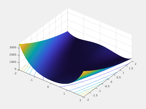 f(x)= 100*(x(2)-x(1)^2)^2+(1-x(1))^2