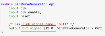 Если модель Simulink имеет порт с типом данных с фиксированной точкой, по умолчанию, сгенерированные кодированные карты SystemVerilog порт к совместимому типу C, который может содержать необходимые биты. Для получения дополнительной информации об этих отображениях, см. "Поддерживаемые Типы данных Simulink" в документации.