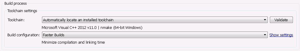 В установке Toolchain выберите одну из версий Visual Studio, если вы используете Windows или один из наборов инструментальных средств GCC, если вы используете Linux.