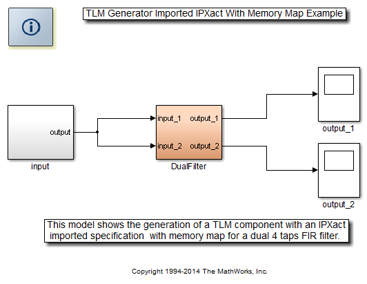 >> openTlmgDemoModel('ipxactmem');Следующая модель открывается в Simulink.