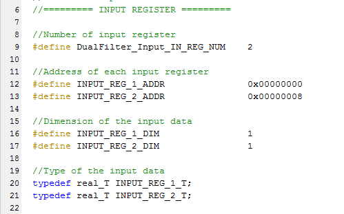 Следующие строки кода (MWMapInput) представляют КИХ-Фильтр input_1 сопоставляющий на отдельном регистре INPUT_REG_1.