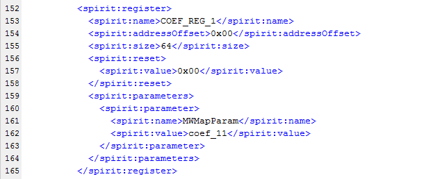 Точно так же следующие строки кода (MWMapParam) представляют КИХ-параметр Фильтра coef_11 сопоставляющий на отдельном регистре COEF_REG_1.