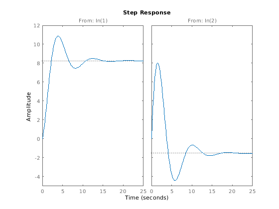 [y,...] = step(sys,...,options) задает дополнительные опции для вычисления переходного процесса, такие как амплитуда шага или входное смещение. Используйте stepDataOptions, чтобы создать набор опции options.