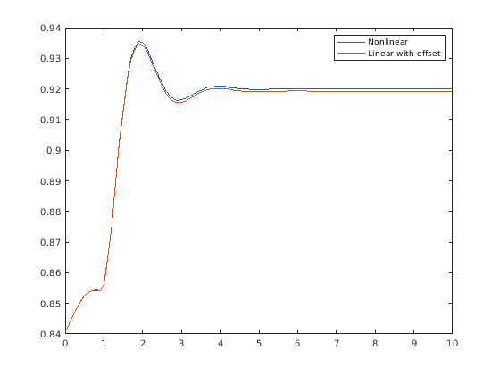 Все системы, построенные на одном графике, должны иметь то же количество вводов и выводов. Можно, однако, построить соединение непрерывных - и системы дискретного времени на одном графике. Этот синтаксис полезен, чтобы сравнить переходные процессы нескольких систем.
