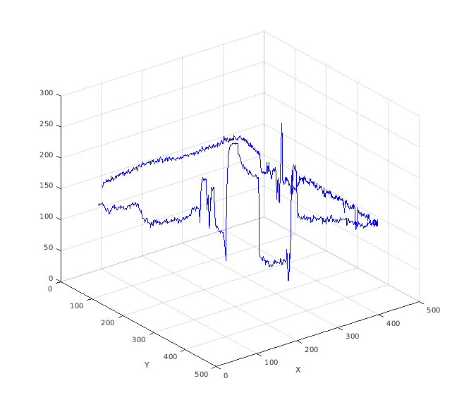 improfileimprofile(n)improfile(I,xi,yi)improfile(I,xi,yi,n)c = improfile(___)[cx,cy,c] = improfile(I,xi,yi,n)[cx,cy,c,xi,yi] = improfile(I,xi,yi,n)[___] = improfile(x,y,I,xi,yi)[___] = improfile(x,y,I,xi,yi,n)[___] = improfile(___,method)improfile получает значения интенсивности пикселей вдоль строки или многострочного пути в шкале полутонов, двоичном файле или изображении RGB в текущей системе координат и отображает график значений интенсивности. Если заданный путь состоит из однострочного сегмента, improfile создает двумерный график значений интенсивности по сравнению с расстоянием вдоль линейного сегмента. Если путь состоит из двух или больше линейных сегментов, improfile создает 3D график значений интенсивности по сравнению с их x-и y-координатами.