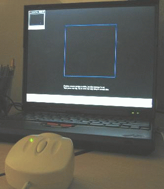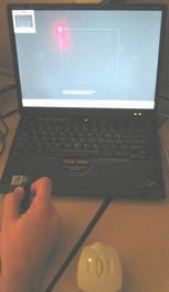 Монитор компьютера, рабочий MATLAB размещается в представление камеры, в то время как лазерный указатель сияет красная точка на окне фигуры MATLAB. Камера используется, чтобы получить изображения окна фигуры MATLAB, в то время как лазерный указатель перемещается. Путем отслеживания перемещения лазерной точки лазерный указатель может использоваться в качестве указывающего устройства, подобного мыши.