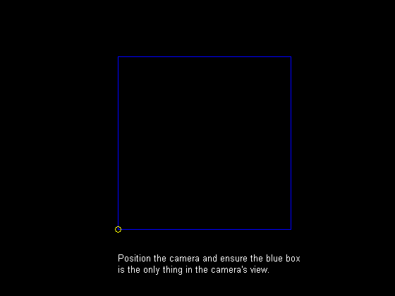 % Display positioning information. posText = sprintf('%s\n%s', ... 'Position the camera and ensure the blue box', ... 'is the only thing in the camera''s view.'); infoText = text(0, -0.2, posText, 'Color', [1 1 1]); axis([-0.2 1.2 -0.2 1.2]) axis equal