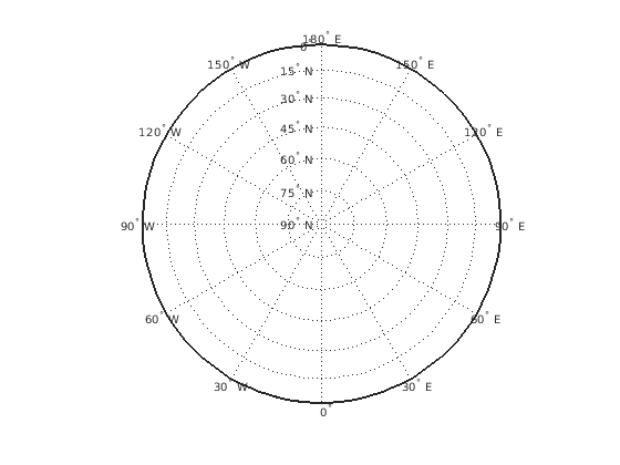 figure('Color','w') axesm('eqaazim','MapLatLimit',[0 90]) axis off framem on gridm on mlabel on plabel on; setm(gca,'MLabelParallel',0)