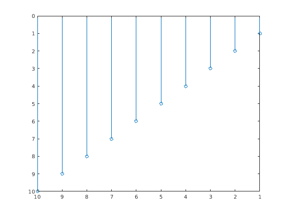 stem(1:10) ax = gca; ax.XDir = 'reverse'; ax.YDir = 'reverse';