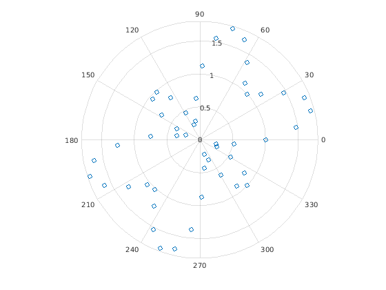 Отобразите данные на графике в полярных координатах и отобразите круговой маркер в каждой точке данных.
