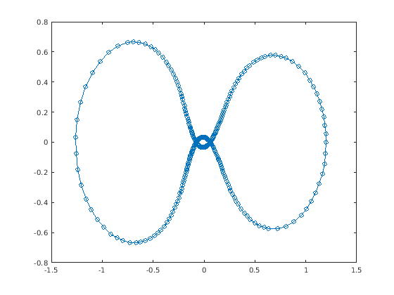 Первые два компонента решения являются координатами тела бесконечно малой массы, таким образом строение один против другого дает орбиту тела.