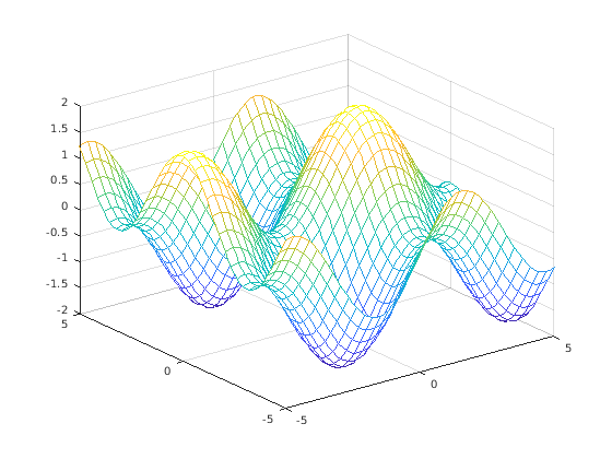fmesh(f)fmesh(f,xyinterval)fmesh(funx,funy,funz)fmesh(funx,funy,funz,uvinterval)fmesh(___,LineSpec)fmesh(___,Name,Value)fmesh(ax,___)fs = fmesh(___)fmesh( создает сетчатый график выражения f)z = f(x,y) на интервале по умолчанию [-5 5] для x и y.