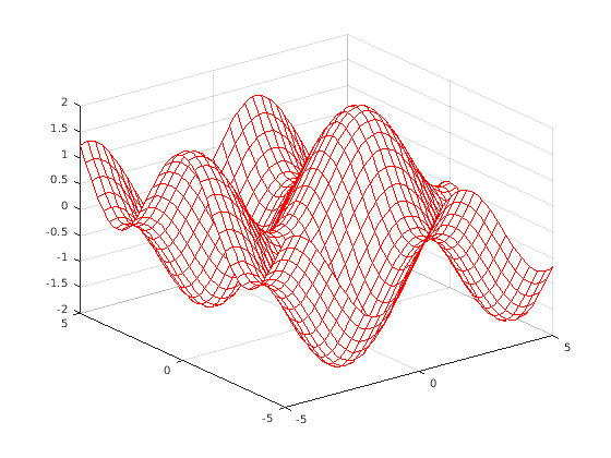 fmesh(@(x,y) sin(x)+cos(y),'EdgeColor','red')