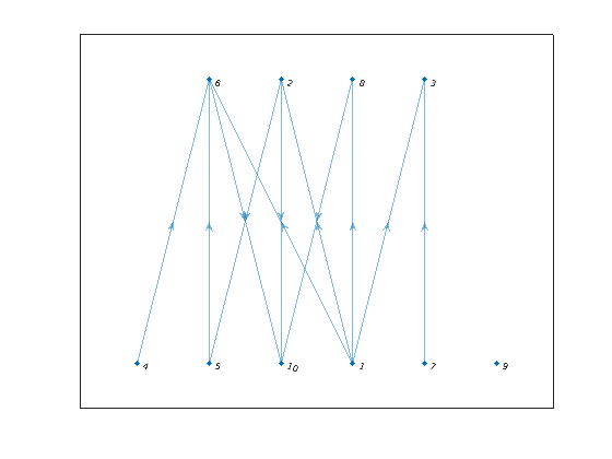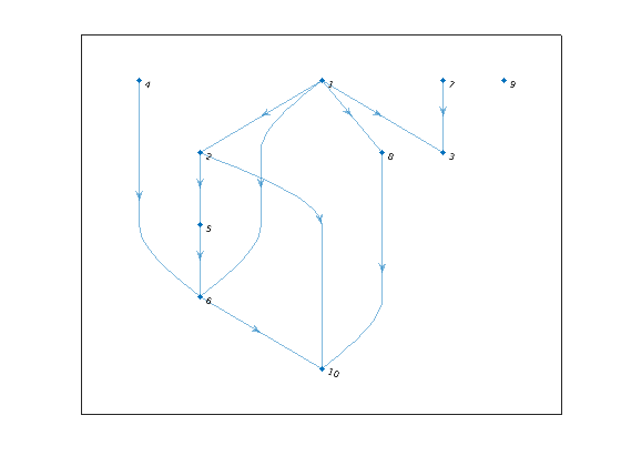 v = bfsearch(G,s)T = bfsearch(G,s,events)[T,E] = bfsearch(G,s,events)[___] = bfsearch(___,'Restart',tf) применяет поиск в ширину, чтобы изобразить в виде графика v = bfsearch(G,s)G, запускающийся в узле s. Результатом является вектор идентификаторов узла в порядке их открытия.