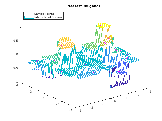 указывает, что метод интерполяции раньше вычислял vq = griddata(___,method)vq с помощью любого из входных параметров в предыдущих синтаксисах. method может быть 'linear', 'nearest', 'natural', 'cubic' или 'v4'. Методом по умолчанию является 'linear'.
