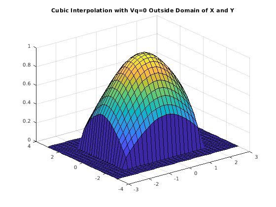 title('Cubic Interpolation with Vq=0 Outside Domain of X and Y');