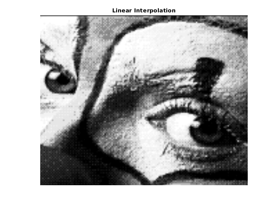 figure imagesc(Vq); colormap gray axis image axis off title('Linear Interpolation');