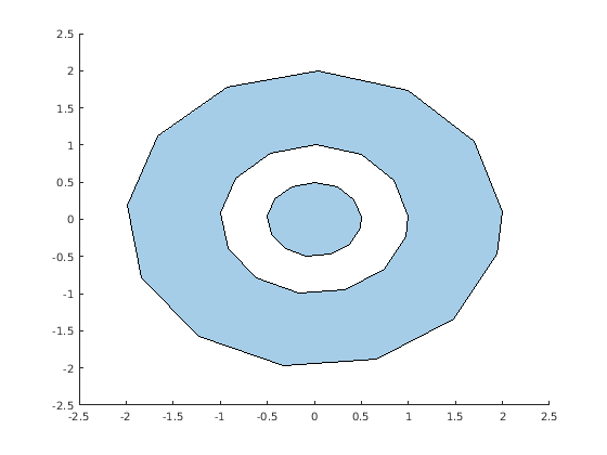При создании объекта polyshape входные вершины должны задать один или несколько контуров полигона, которые не имеют никаких пересечений и правильно вкладываются. В противном случае функция polyshape автоматически изменяет входные вершины по мере необходимости, чтобы создать четко определенный полигон.